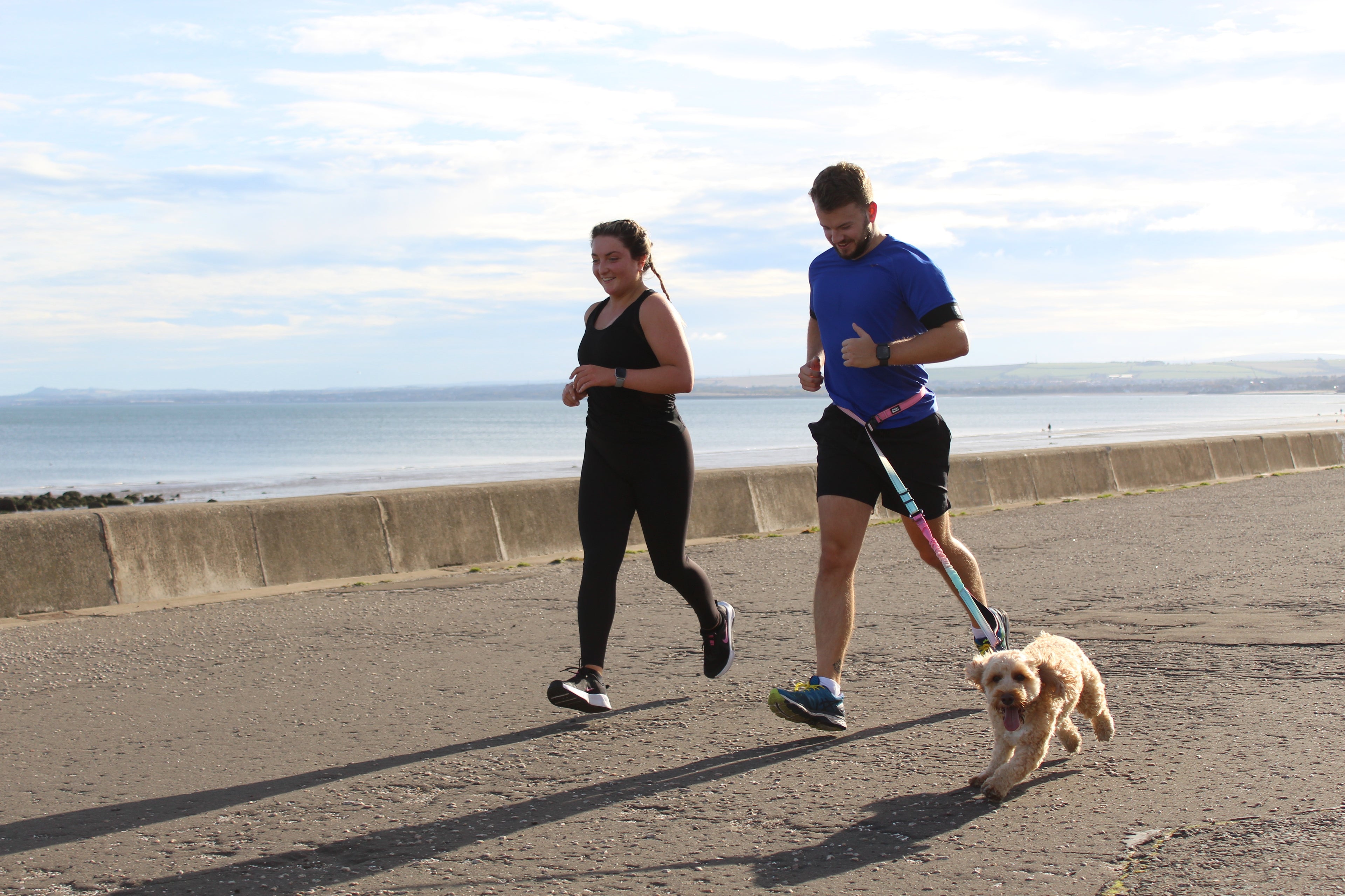 A brilliant lead for running with the best friend! The waistband easily adjusts so I can switch to hand holding. And you can clip two together for walking two dogs hands free at the same time!