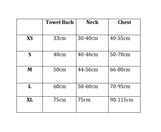 Measure these areas on your dog and compare to the Chart below. We recommend using a tailers tape or piece of string/ribbon to measure your dog. If using string or ribbon then transfer the length onto a ridged measure.